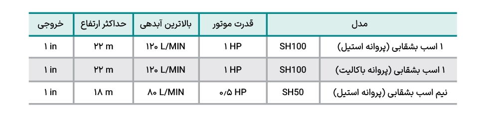 قدرت پمپ: بر اساس نیاز آب و ارتفاع مورد نظر، قدرت پمپ (اسب بخار) را انتخاب کنید.